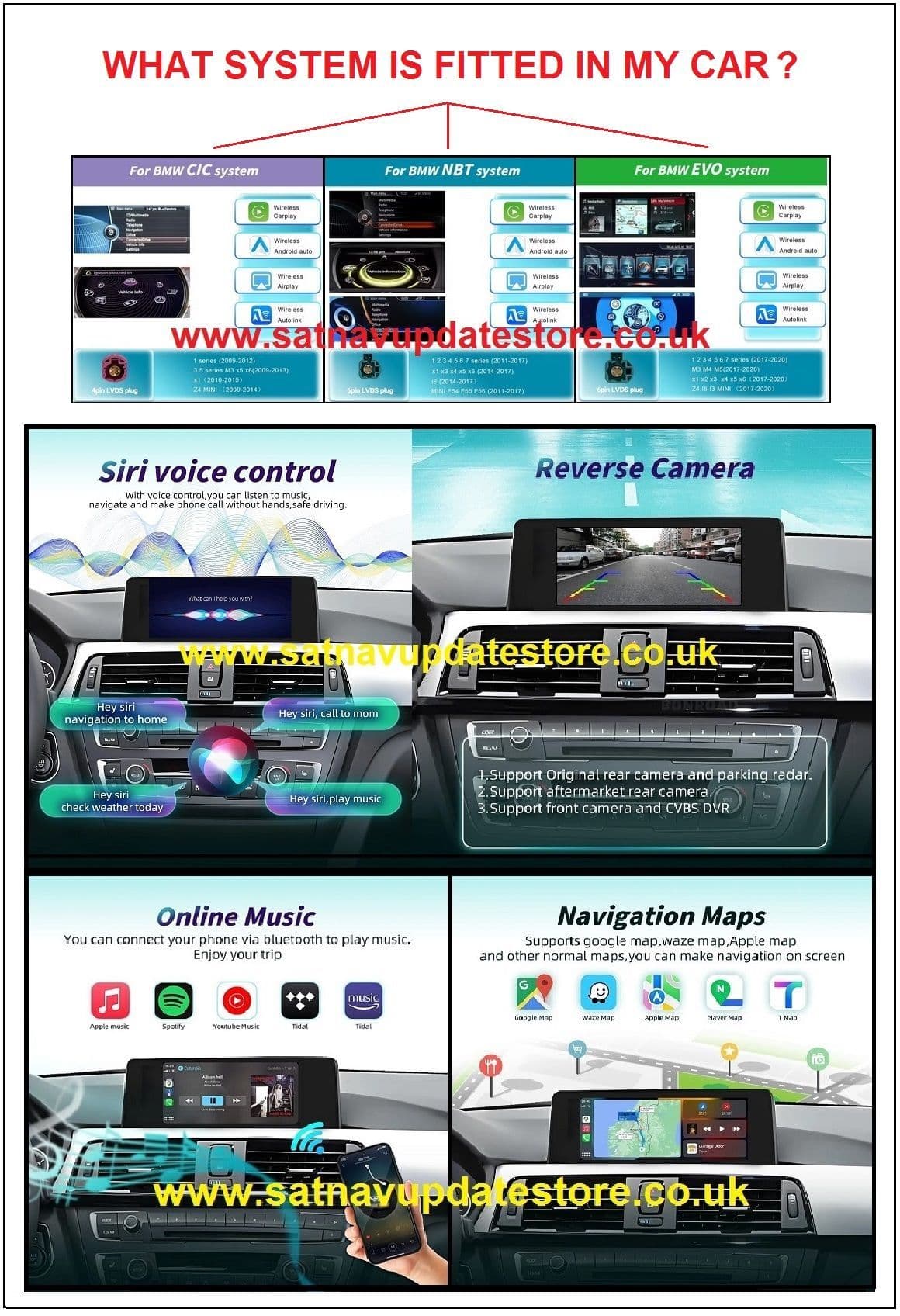 Wireless CarPlay Android Auto Multimedia Interface Decoder For BMW NBT CIC EVO Systems - 1 2 3 4 5 7 Series X1 X3 X4 X5 F20 F21 F30 F31 F10 F48 F25 E84